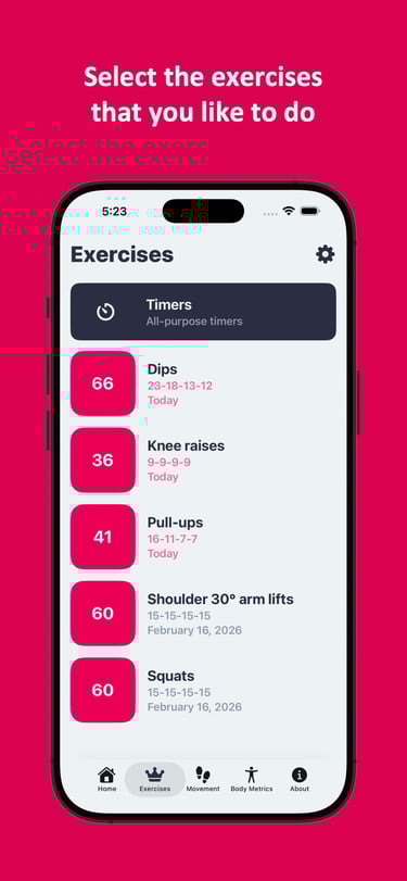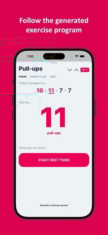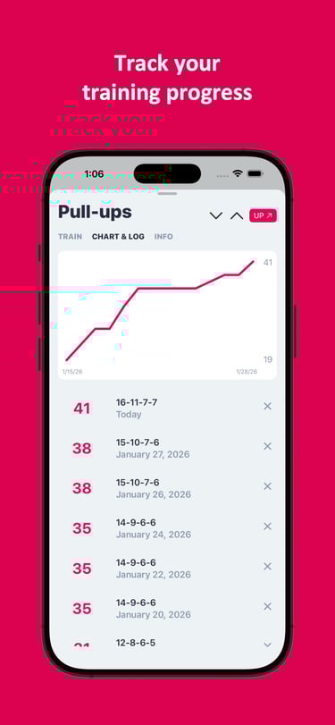 Ability to track your training progress for all selected exercises with logs and exercise charts
