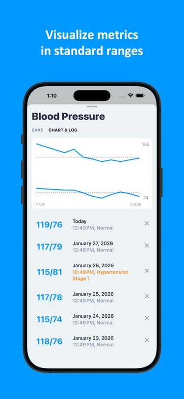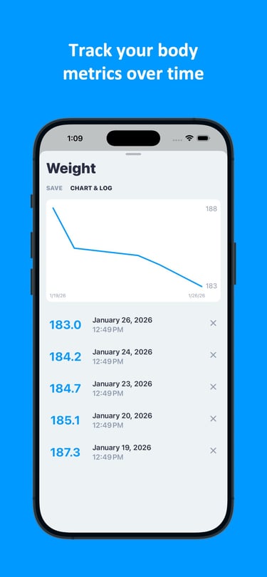Ability to track your body and health metrics, with logs and metric charts